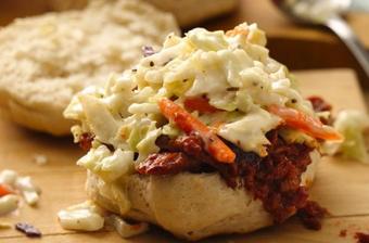 Grilled BBQ Pork and Coleslaw Biscuit Sandwich